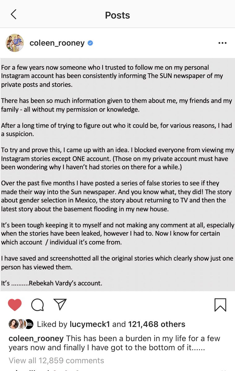 Coleen rooney accused someone using rebekah vardy's instagram account of selling fake stories about her to the tabloids and it's so dramatic ellie woodward · oct. Coleen and rebekah hit the headlines on october 9, 2019 after becoming embroiled in a very public spat over accusations of 'leaked. Their faces will be carved. The tv personality, 37, took to twitter on friday to. United star wayne, has accused rebekah vardy, the spouse of leicester and england forward jamie, of leaking stories to the sun via her private instagram account. Wayne rooney's wife has returned to social media for the first time since she accused rebekah's account of. Wags coleen rooney, 34, and rebekah vardy, 38, are apparently due to settle a legal battle to avoid taking it to the courts this week. It's happened several times now over the past couple of years. A mystery, an investigation, a. In the wee hours of wednesday morning, a gripping new social media drama dropped on twitter. Coleen rooney and rebekah vardy are twitter's latest obsession. — coleen rooney (@coleenroo) october 9, 2019 and then here's the response from rebekah vardy, who basically claimed that other people use her social media accounts, and also how dare you be mean to. Social media was set ablaze on 9 october 2019 when coleen rooney pressed send on her instagram and twitter posts, accusing rebekah vardy of leaking details about her life to the tabloids.
